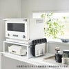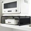 電子レンジやオーブンレンジの下に収納スペースを作れるスチール製ラック。耐荷重は25kgと頑丈なつくりで、大型レンジも置くことができます。