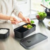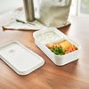 ごはんを美味しく温められる、別売の「冷凍ごはん容器」のザルをそのままセットできる大人用の一段ランチボックスです。ザルを使わずそのままごはんを入れることもできます。