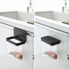 設置方法も簡単で、貼り付けたフィルムフックに掛けるだけ。光沢のあるシンク扉やタイル、キッチンパネルなどに浮かせて設置できます。