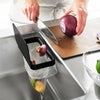 調理スペースのまな板から野菜くずをスライドさせてそのまま捨てられる簡易ゴミ箱です。浮かせるから水切れが良く、スリムで場所を取らないのが嬉しいポイント。