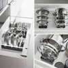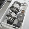 シンク下の棚、引き出し、食器棚などで場所を取るフライパン、鍋、フタを取り出しやすく整頓できる収納スタンドです。コンパクトにまとまります。