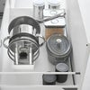 幅32cmの大きいタイプです。仕切りバーは10つあり、直径18〜30cmまでの鍋、鍋蓋、フライパンを収納できます。