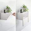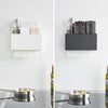 貼って剥がせるフィルムフックで浮かせて収納できます。洗面所やキッチン、冷蔵庫扉などに簡単に壁掛けが可能です。