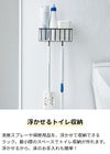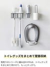 「tower ウォールトイレ用品収納ラック」は、壁面に設置して、消臭剤やトイレ洗剤を浮かせて収納できるラック。スプレーボトルやクリーナーシートなどを、省スペースに取出しやすく収納できます。トイレブラシやフロアワイパーが掛けられるフック付きで、掃除用品もひとまとめに!