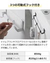 トイレブラシやフロアワイパーなどのトイレ清掃アイテムを引っ掛けて収納するための可動式のフックが3つ付属しています。