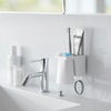 1人分の歯磨きセットをまとめて収納できる「tower フィルムフック1人用歯ブラシホルダー&マグネットタンブラー」。壁面に浮かせて収納できるから、乾きやすく衛生面でも安心。洗面台のお掃除も楽になること間違い無しです!