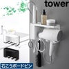 tower (タワー) 壁付けドライヤー&ヘアーアイロンホルダー トレー付き