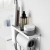 ドライヤーやヘアーアイロンはもちろん、ヘアブラシやスタイリング用品、洗面小物をまとめて収納できます。壁掛け収納で場所を取らず、洗面台まわりのスペースも有効活用できます。