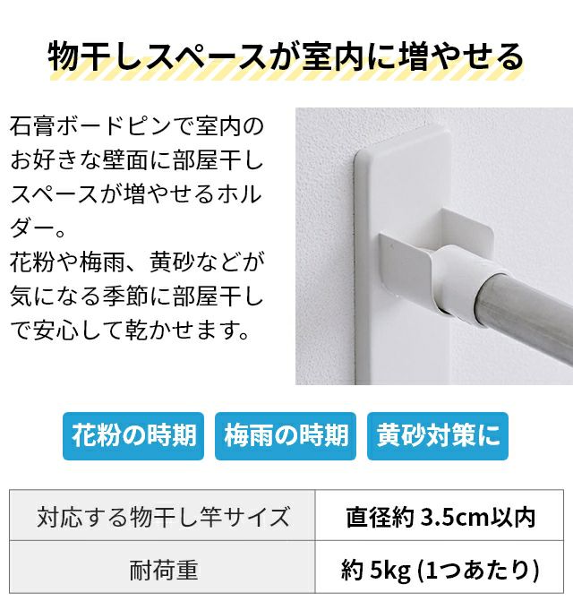 他の画像を見る 石膏ボードピンで壁面に取り付けて、お手持ちの物干し竿を掛けるだけ!洗面所やリビングの窓際など、室内の好きな場所に部屋干しスペースを増やすことができます。 山崎実業 物干し竿受け 石こうボード壁対応物干し竿ホルダー タワー 2個組 2113 2114 物干しスタンド 物干しハンガー ランドリーハンガー 洗濯物干し 室内干し 部屋干し おしゃれ 壁掛け 室内 洗濯 tower yamazaki タワーシリーズ 当店特別価格 ¥ 2,970 税込 詳細を見る お気に入りに登録する