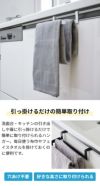 調節バーがあり、布巾やタオルの長さを調節して収納することができるため、下段の引き出しに挟まれるを防止します。設置場所の機能性を損ないません。