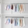 鴨居、窓枠に取り付ける室内物干しです。床にスタンドを設置する場所がなくても、物干しを浮かせて設置できるので、収納スペースを節約できます。