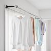 鴨居、窓枠に取り付ける室内物干しです。床にスタンドを設置する場所がなくても、物干しを浮かせて設置できるので、収納スペースを節約できます。