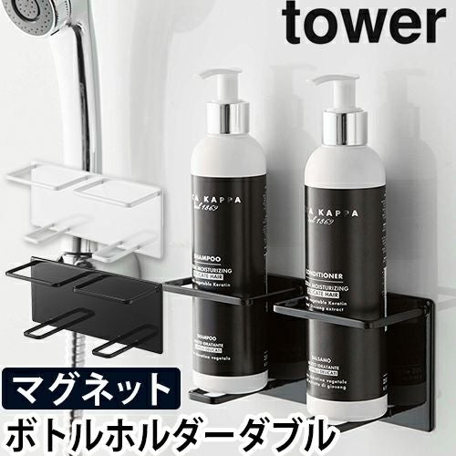 山崎実業/ボトルホルダー/マグネットラック/ディスペンサー/マグネット/壁/壁掛け/浮かせる/洗顔/浴室収納/浮かせる収納/壁面収納/浴室/バスルーム/お風呂/収納/yamazaki/タワーシリーズ/白/ホワイト/黒/ブラック