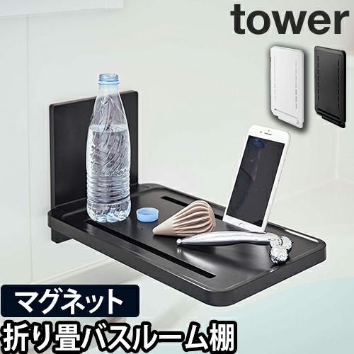 山崎実業 折り畳み棚 マグネット折り畳み棚 バステーブル バスタブトレー スマホスタンド バスタブラック 棚 ラック トレイ yamazaki タワーシリーズ [tower タワー マグネットバスルーム折り畳み棚 5532 5533 4903208055321 4903208055338]