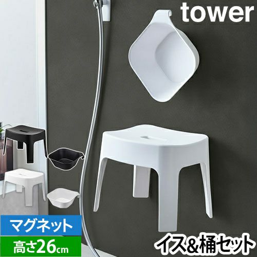 tower(タワー) マグネット風呂イス SH25 + マグネット&引っ掛け湯おけ セット