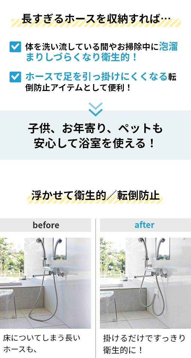 他の画像を見る シャワーホースを吊り下げ収納できるフックは、床に泡が溜まらなくなり衛生的!掃除用品やスプレーの収納としても使えます!マグネットタイプで壁を傷つけないから安心。 山崎実業 マグネットバスルームシャワーホースフック タワー 1863 1864 壁掛けフック 引っ掛け 吊り下げ 壁 傷つけない 吊り下げ収納 穴開けない バス マグネット お風呂 ホルダー おしゃれ tower 壁面収納 浴室収納 yamazaki タワーシリーズ 当店特別価格 ¥ 1,320 税込 在庫切れ 詳細を見る お気に入りに登録する