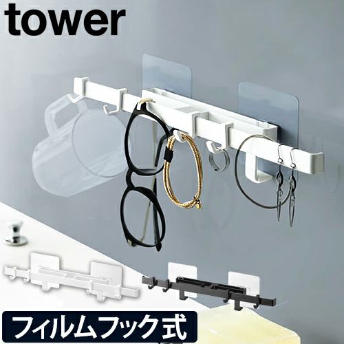 帰宅時の手洗いや洗顔時、置き場所に困るアクセサリーや眼鏡を掛けられる「tower フィルムフックサニタリーハンガー」。使用頻度の高い一軍アクセサリーの定位置にすれば、朝の身支度もスムーズに♪