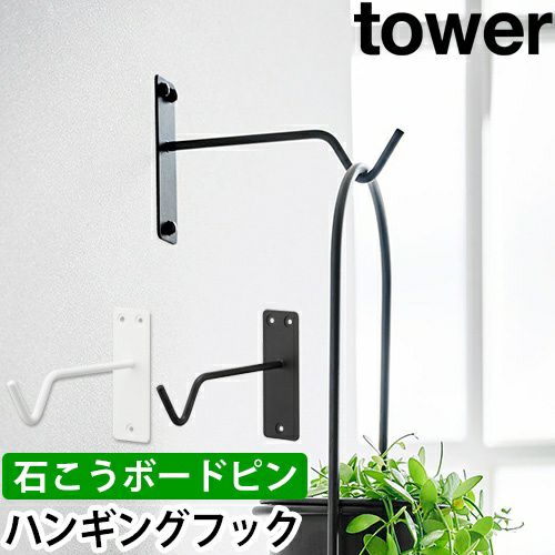観葉植物、ランタン、スピーカー等を吊るせる壁掛けフックの「tower ウォールハンギンググリーンフック 石こうボード壁対応」。石こうピンで壁に簡単に取り付けられて、開けた穴も目立ちません。お子様やペットの手が届かない高い場所に安心して飾ることができます!また浮かせて収納するので床掃除も楽になります。リビングや書斎の一角をおしゃれに彩ります!