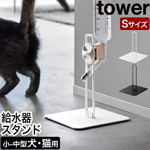 ケージやサークルがなくてもOK!設置するだけでペットの水飲み場を好きな場所に作ることができる、「tower ペット用ボトル給水器スタンド S」。小型サイズかつシンプルデザインで場所を選ばす設置できます。給水器は500mlまでのボトル対応で、ノズル・受け皿タイプ両用。ペットが飲みやすい高さに無段階で調整できるので、小型犬〜中型犬、猫ちゃん用にもご使用いただけます。