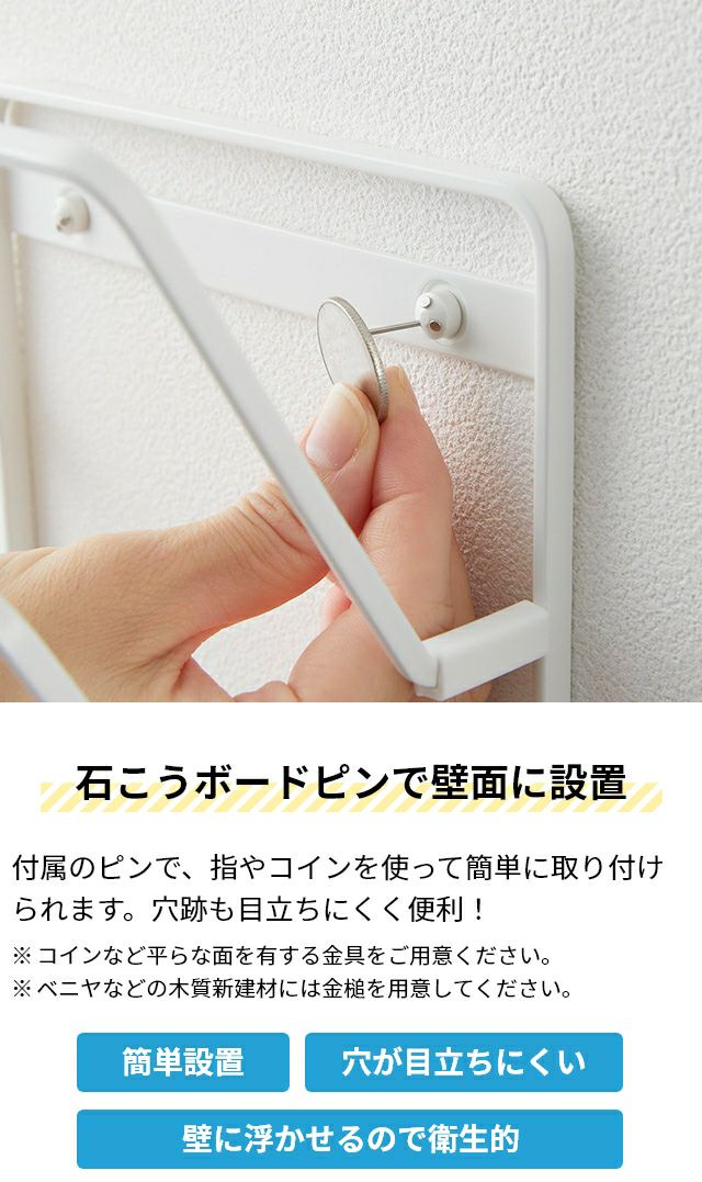 他の画像を見る フローリングワイパーがすっきり片付くホルダー。石こうボードピン設置なので穴が目立ちにくく、好みの壁に取り付け立てて収納でき、スムーズにワイパーが取り出せます。 山崎実業 ワイパースタンド 石こうボード壁対応フローリングワイパーホルダー タワー 1997 1998 フロアワイパー スタンド 石膏ピン 石膏ボード 壁面 北欧 おしゃれ モノトーン tower 壁面収納 リビング収納 浮かせる収納 yamazaki タワーシリーズ 当店特別価格 ¥ 2,530 税込 詳細を見る お気に入りに登録する
