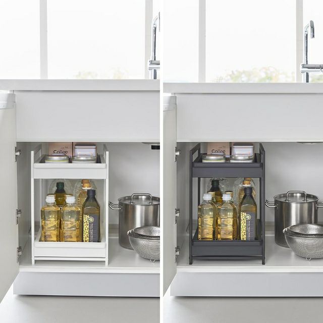 他の画像を見る 整理しにくいシンク下や洗面台下をすっきりまとめる収納ケース。手前に引き出せるスライド式は、奥まで取り出しやすく、出し入れがスムーズ!上段は高さ4段階調節。 山崎実業 収納棚 シンク下スライドラック タワー 2段 1460 1461 引き出し 収納ボックス ストッカー 後付け 取っ手 収納ケース 小物 tower シンク下収納 キッチン収納 隙間収納 洗面台下収納 yamazaki タワーシリーズ 当店特別価格 ¥ 11,000 税込 詳細を見る お気に入りに登録する