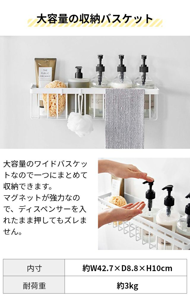 他の画像を見る 浴室壁面に強力マグネットで簡単に取り付けられるバスルームバスケット。ボトル・掃除道具(水切りワイパー・バスブーツ)・おもちゃ・小物類など用途に合わせて収納◎ 山崎実業 バスラック マグネットバスルームバスケット タワー ワイド 3769 3770 スルームラック ボトルラック ラック おもちゃバスケット フック 磁石 水切り モノトーン シンプル tower 浴室収納 お風呂収納 壁面収納 おもちゃ収納 マグネット収納 yamazaki タワーシリーズ 当店特別価格 ¥ 4,950 税込 詳細を見る お気に入りに登録する