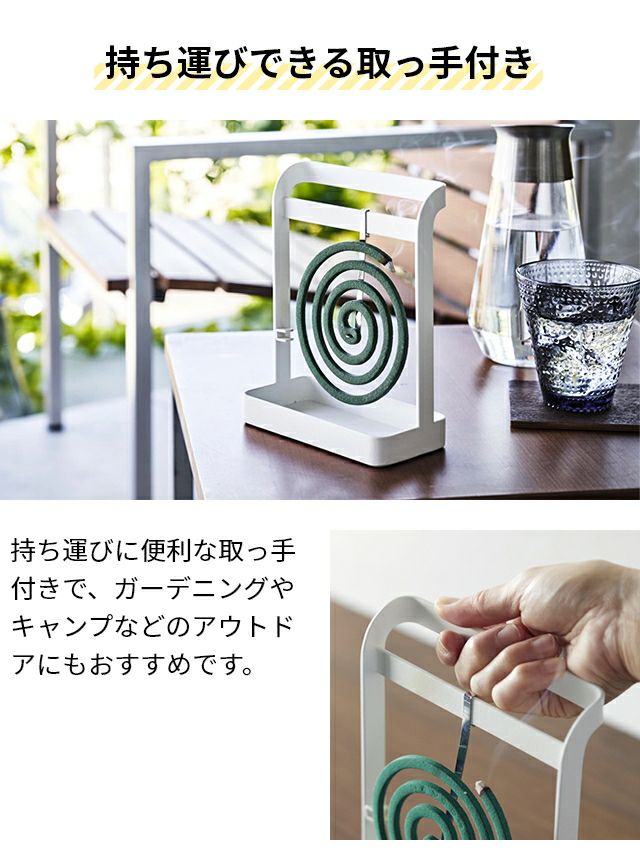 他の画像を見る 巻蚊取り線香を吊り下げて、省スペースに使えます。持ち運びできるハンドル付きで、屋外でもOK。側面に付いたコの字部分で、蚊取り線香の先端を挟めば火を消すことも可能。 山崎実業 蚊取り線香入れ 蚊取り線香ハンガー タワー 6446 6447 蚊取り線香ホルダー 蚊取りポット 蚊取り器 おしゃれ キャンプ 屋外 かわいい 吊り下げ アウトドア ケース シンプル スタンド 外 北欧 ガーデニング tower yamazaki タワーシリーズ 当店特別価格 ¥ 2,750 税込 在庫切れ 詳細を見る お気に入りに登録する