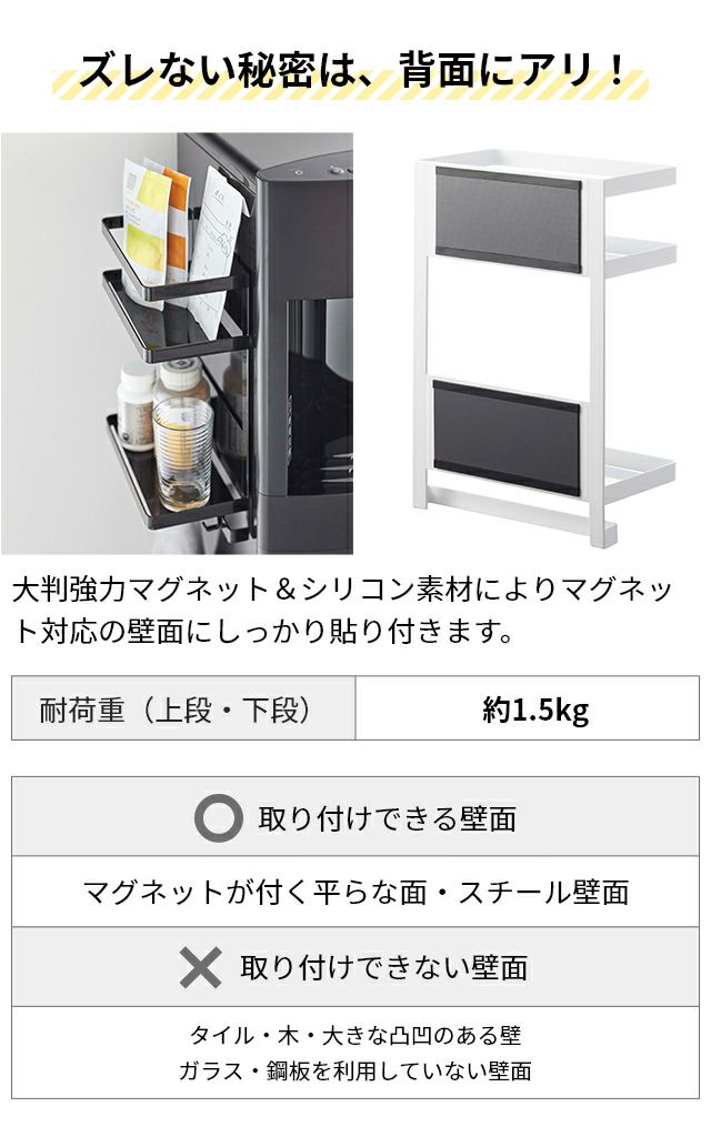 他の画像を見る シンプルさが人気の山崎実業「tower」シリーズからマグネットで取り付けられる収納ラックが登場。2段で大容量!ウォーターサーバー横や冷蔵庫横に設置してご使用ください。 山崎実業 タワー 収納ラック ウォーターサーバー横マグネットラック 2段 7119 7120 ラック 棚 収納棚 ウォーターサーバー マグネット 磁石 2段 二段 スパイス シンプル 壁面 tower 壁面収納 マグネット収納 浮かせる収納 小物収納 キッチン収納 yamazaki タワーシリーズ 当店特別価格 ¥ 3,520 税込 在庫切れ 詳細を見る お気に入りに登録する
