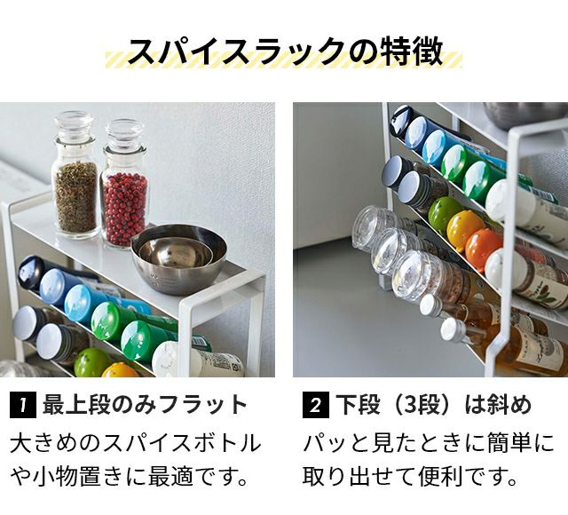 他の画像を見る シンプルさが人気の「tower」シリーズからスパイスラックが登場。幅24×奥行き9.5cmとスリムながら、4段棚で収納力は抜群。散らかりがちなスパイスを収納出来ます。 山崎実業 タワー キッチンラック スリムスパイスラック 4段 8144 8145 スパイスラック ラック 棚 調味料ラック スリム 斜め フラット 完成品 ミル 25cm 4段 おしゃれ シンプル モノトーン tower キッチン収納 見せる収納 調味料収納 隙間収納 yamazaki タワーシリーズ 当店特別価格 ¥ 2,750 税込 在庫切れ 詳細を見る お気に入りに登録する