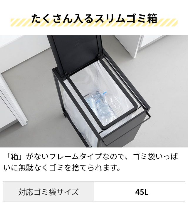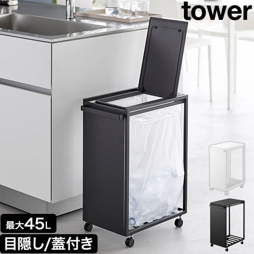 キッチンをスッキリ見せる目隠し・蓋付きタイプのゴミ箱です。シンプルでスマートなデザインがキッチンに溶け込みます。 タワー スリム蓋付き目隠しダストワゴン タワー 45L 10639 10640 ゴミ箱 45リットル キッチン おしゃれ 北欧 シンプル 分別 蓋付き ダストボックス ゴミ袋スタンド ゴミ袋ホルダー ゴミ袋 レジ袋 キャスター付き 公式 tower
