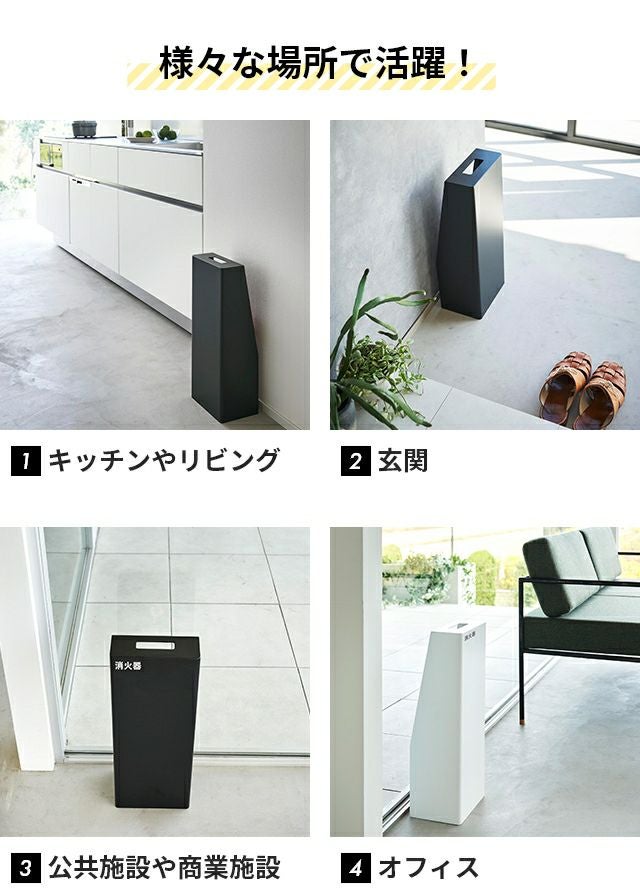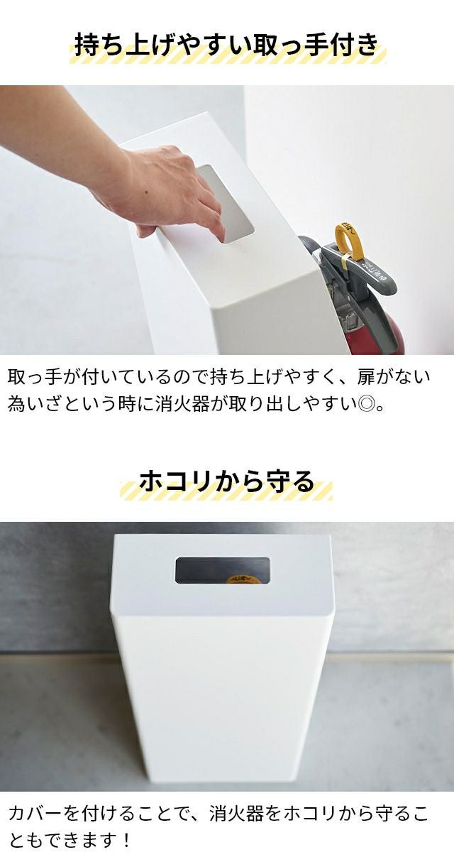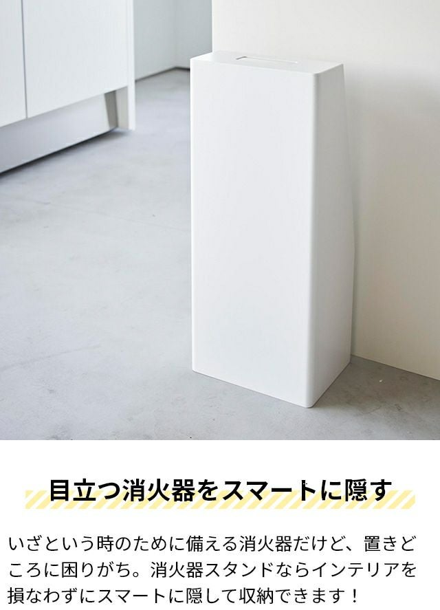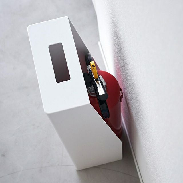 置き場所に困る消火器。長方形のスリムな収納BOXに入れるとスマートに隠せます!お部屋のインテリアに溶け込むシンプルなデザインなので、商業施設にもおすすめ。 山崎実業 消火器スタンド タワー 1955 1956 収納ボックス 入れ物 防災グッズ 消火器ケース 格納箱 消火器カバー 収納ケース スリム 取っ手付き 長方形 おしゃれ tower 玄関収納 キッチン収納 隠す収納 yamazaki タワーシリーズ
