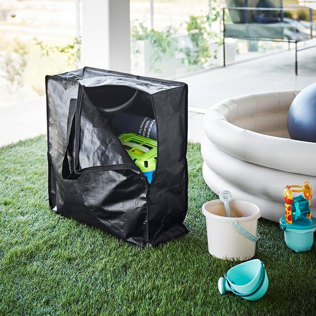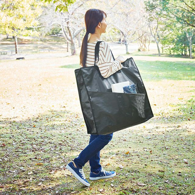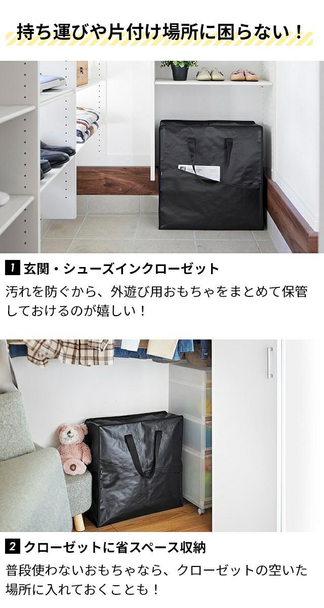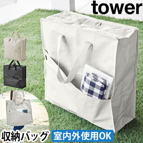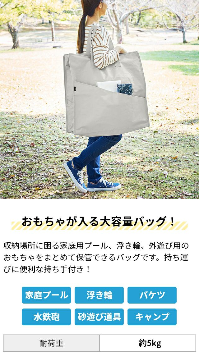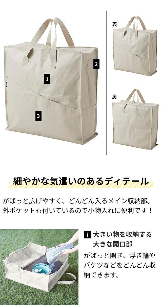 キャンプ、プール、外遊び用のおもちゃを収納できる大きめ収納バッグ。軽量で持ち運びやすく、水を弾き泥汚れを落としやすいポリエチレンシート生地を使用。 山崎実業 ポリエチレンシートポケット付きおもちゃ収納バッグ タワー 1814 1815 大きいバッグ プールバッグ 収納ケース 入れ物 道具入れ ソフトバッグ 収納袋 ストレージバッグ 持ち運び tower おもちゃ収納 yamazaki タワーシリーズ