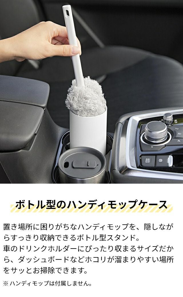 車のドリンクホルダーやドアポケットにぴったり収まる、ボトル型のハンディモップスタンド。生活感を隠しながら、気になるほこりをサッとお掃除できるから便利です。 山崎実業 ワイパースタンド ボトル型ハンディーモップスタンド タワー 1830 1831 掃除用具入れ ケース 車 収納 クルマ おしゃれ 便利 オフィス ペット モップ インテリア リビング tower 隠す収納 リビング収納 車収納 yamazaki タワーシリーズ