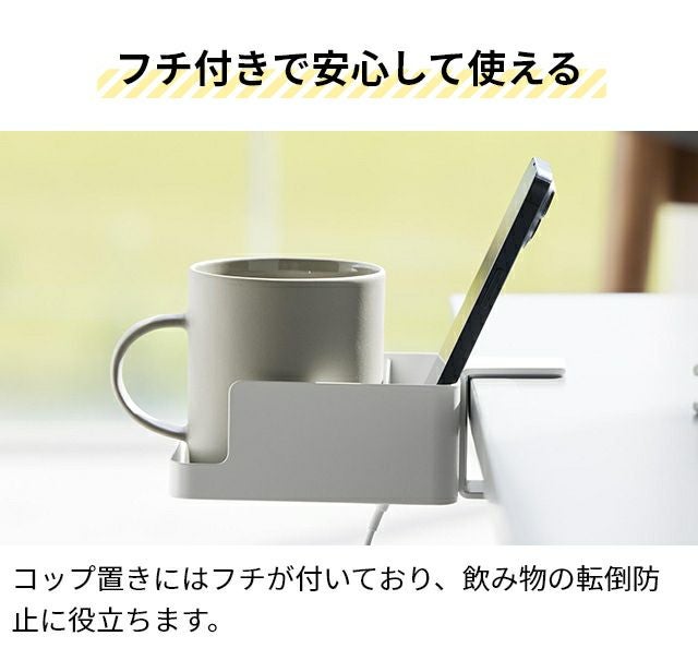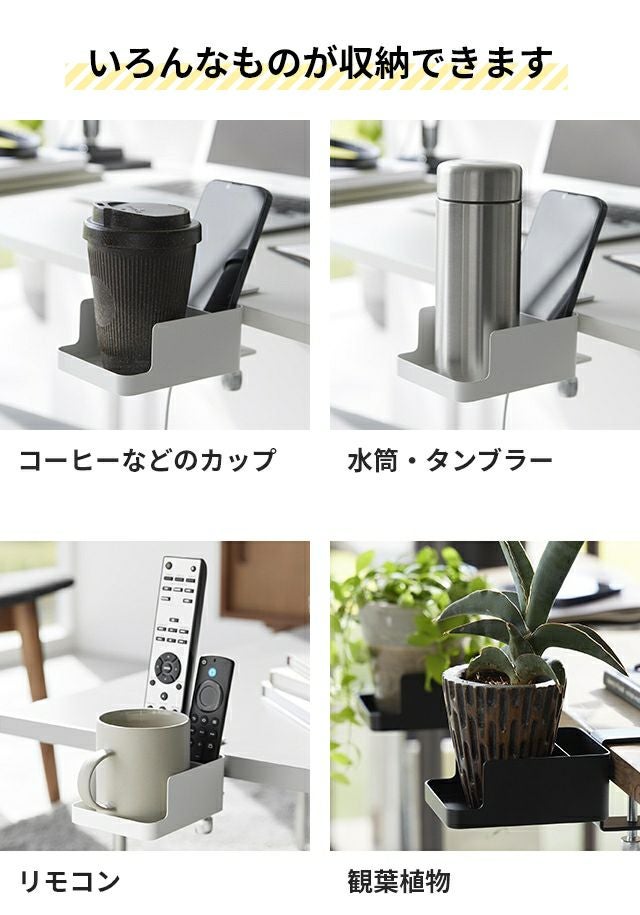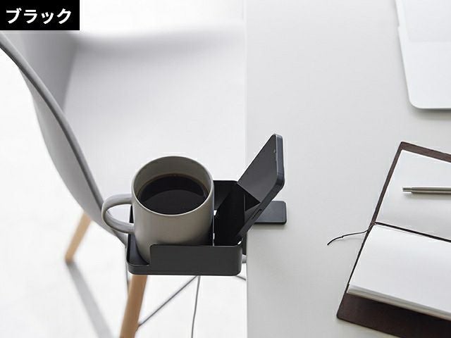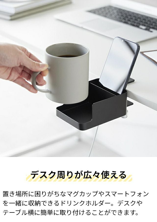 デスク横やチェアの肘置きに、簡単に取り付けできるドリンクホルダー。置き場所に困るマグカップやスマートフォンをまとめて収納できるから、デスク上も広々使えます! 山崎実業 ドリンクホルダー テーブル横スマートフォン&コップホルダー タワー 1638 1639 カップホルダー スマホスタンド リモコンスタンド リモコンラック リモコンホルダー 小物置き スマホ置き デスク tower デスク収納 yamazaki タワーシリーズ