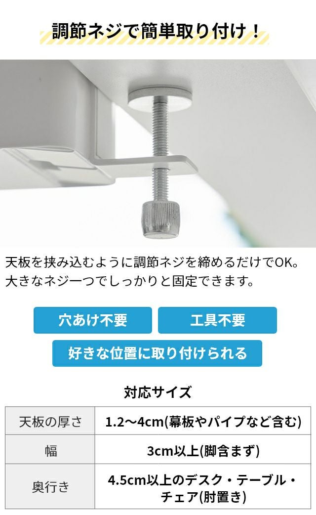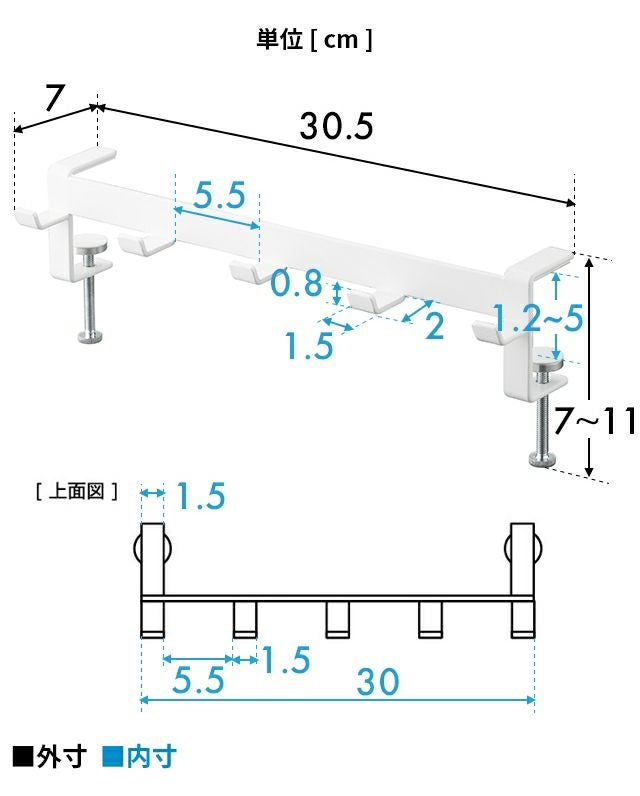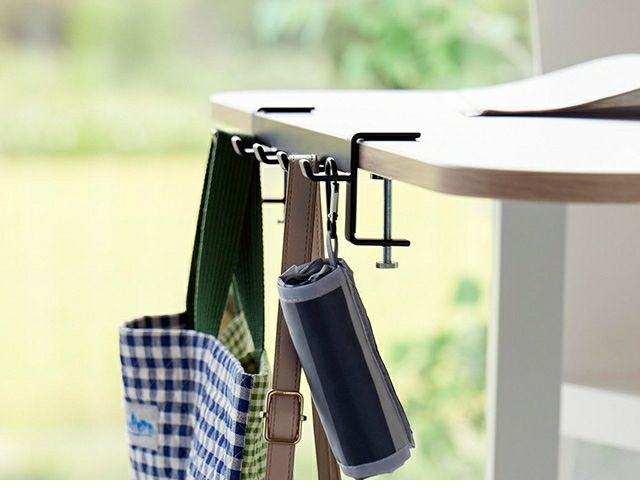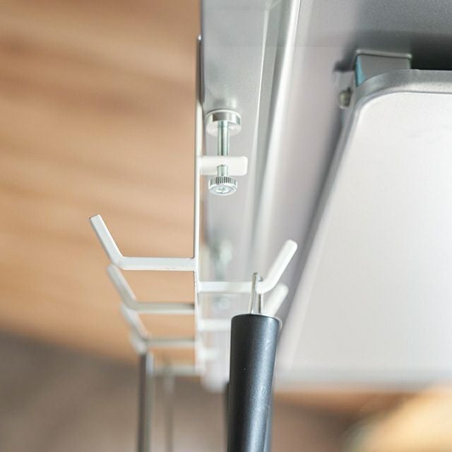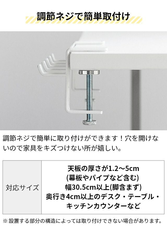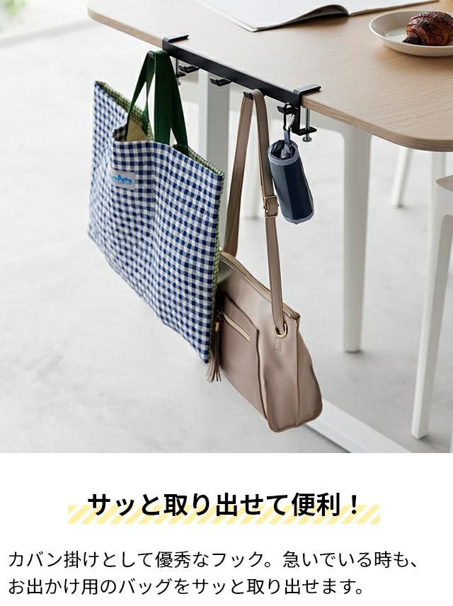 調節ネジで簡単に取付け可能!テーブル横の隙間に収納スペースを作れる5連フックです。カバン掛けにしたり、学校用品やレッスンバッグをスマートにまとめて収納します。 山崎実業 テーブル横フック タワー 1576 1577 ラック ハンガー 引っ掛け 吊り下げ スリム 跡がつかない 穴開けない おしゃれ コンパクト 荷物掛け スチール カバン掛け こども tower 吊り下げ収納 浮かせる収納 yamazaki タワーシリーズ