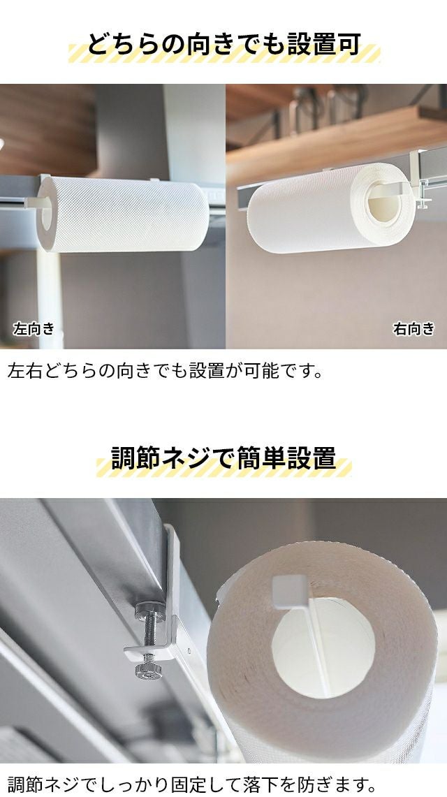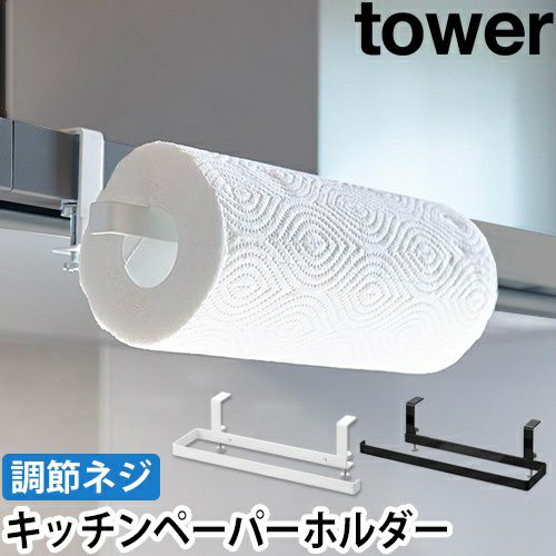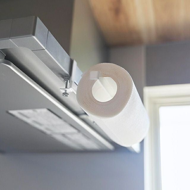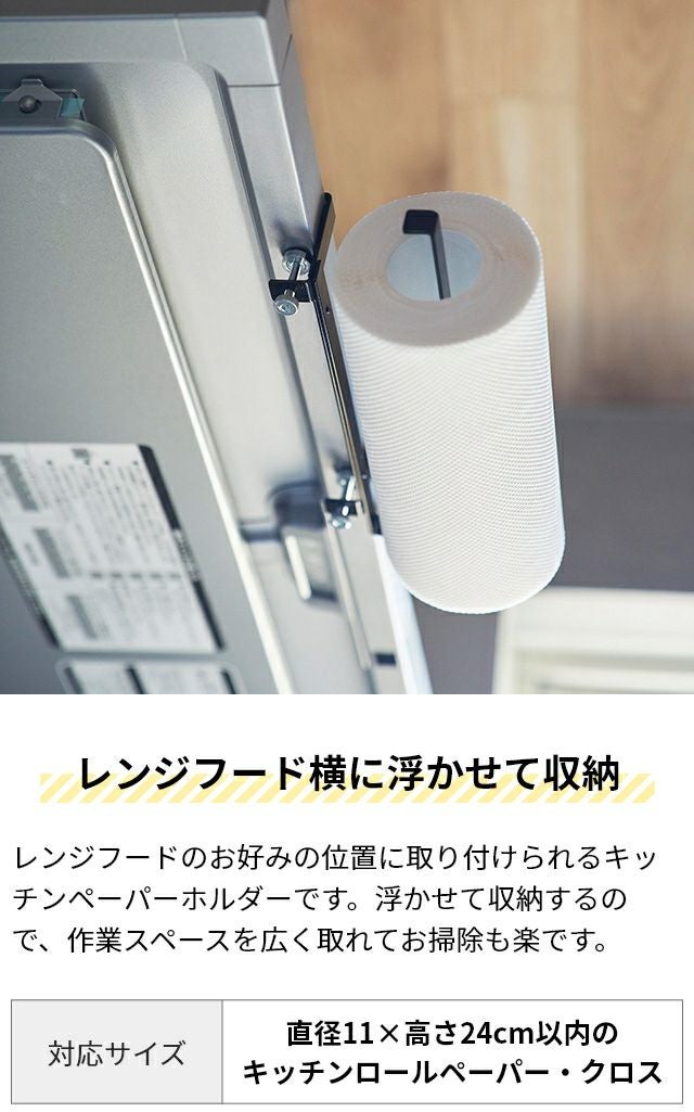 レンジフードの天井部分にキッチンペーパーを収納!ネジ止めで簡単取付けできて、左右どちらの向きにも対応します。シンプルなデザインで見た目もおしゃれ! 山崎実業 レンジフード横キッチンペーパーホルダー タワー 1791 1792 キッチンペーパーハンガー ロールホルダー 吊り 浮かせる おしゃれ 天井 ネジ止め ハンガー tower 浮かせる収納 キッチン収納 yamazaki タワーシリーズ