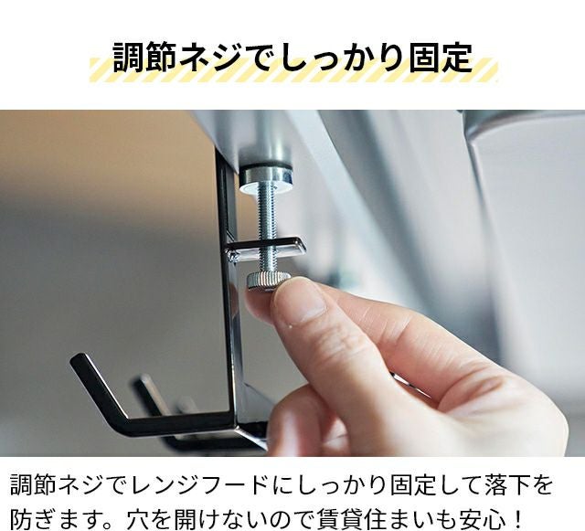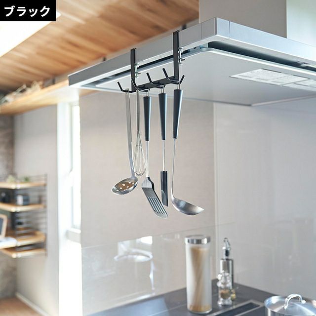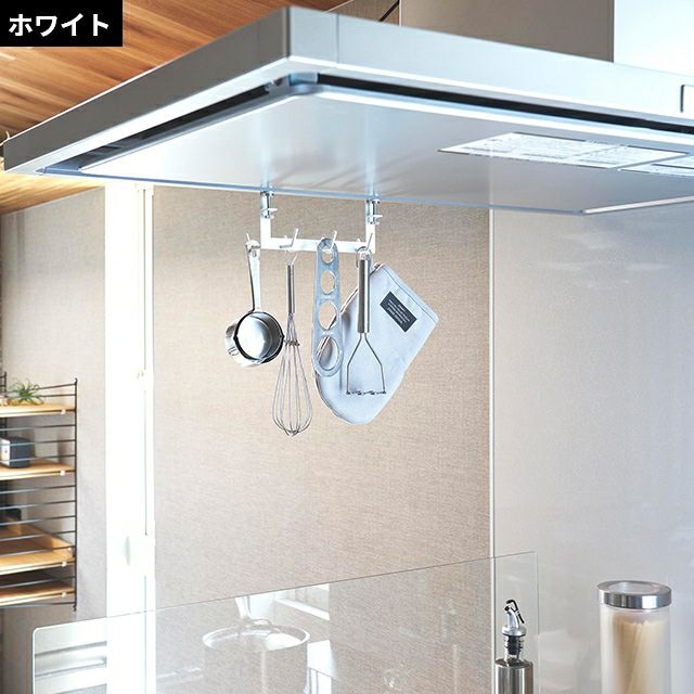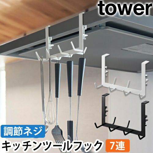 レンジフードの天井部分にキッチンツールを収納!ネジ止めで簡単取付けできて、手前と奥側どちらにも収納できるコンパクト仕様。シンプルなデザインで見た目もおしゃれ! 山崎実業 キッチンツール レンジフード横フック タワー 7連 1787 1788 キッチンツールフック 引っ掛け 吊り下げ おしゃれ 賃貸 ひっかけ 吊り下げ収納 穴開けない はさむ tower キッチン収納 浮かせる収納 yamazaki タワーシリーズ