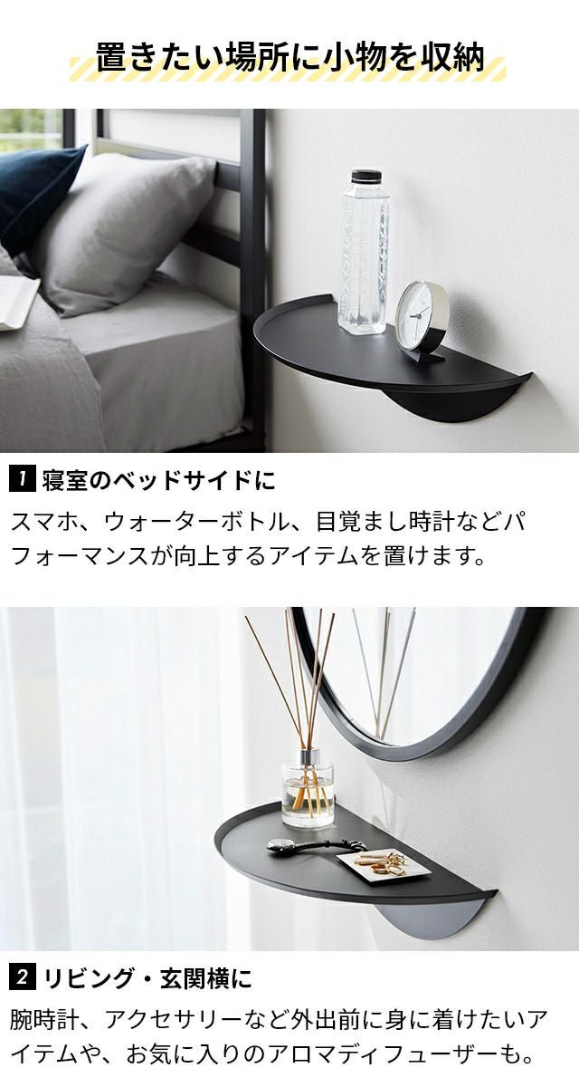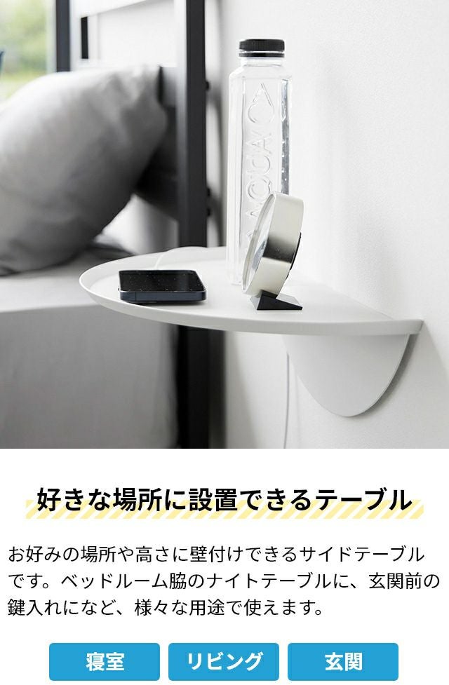 壁穴が目立たない石こうボードピンで壁付けできるモダンなデザインのサイドテーブル。寝室、リビング、玄関に設置しておしゃれな収納スペースが簡単に作れてしまいます! 山崎実業 ウォールサイドテーブル タワー 石こうボード壁対応 1937 1938 ウォールラック ナイトテーブル ウォールシェルフ 飾り棚 おしゃれ 壁付け スリム 丸 tower 小物収納 リビング収納 玄関収納 壁面収納 yamazaki タワーシリーズ