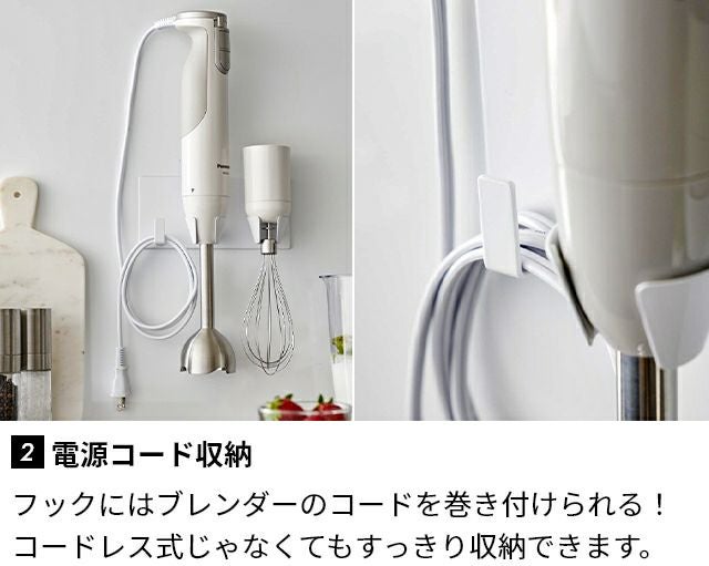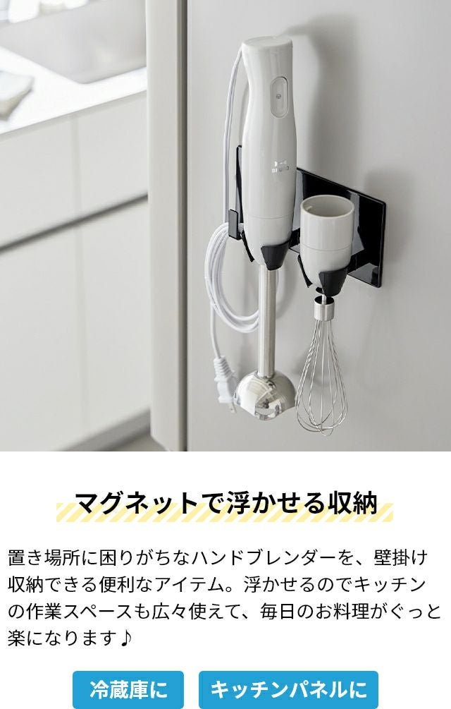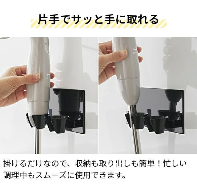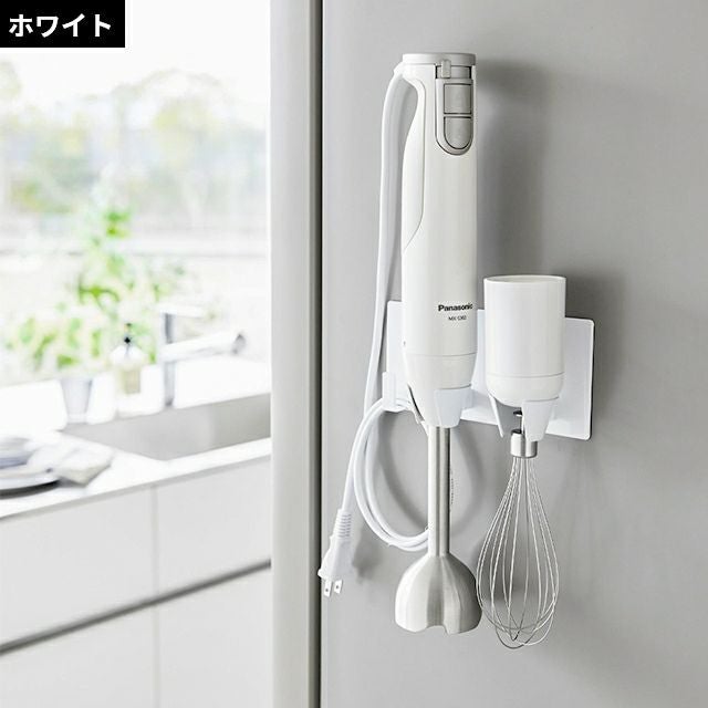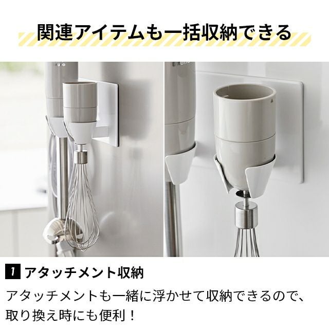 置き場所に困りがちなハンドブレンダーを壁掛け収納できるホルダー。忙しい料理中でも、場所を取らずに片手でサッと掛けられる!アタッチメントも一括収納できます。 山崎実業 マグネットハンドブレンダーホルダー タワー 1612 1613 キッチンツールスタンド スタンド 調理器具立て おしゃれ 北欧 穴 開け ない コンパクト 浮かせる 壁掛け 可愛い シンプル モダン 保管 tower yamazaki タワーシリーズ