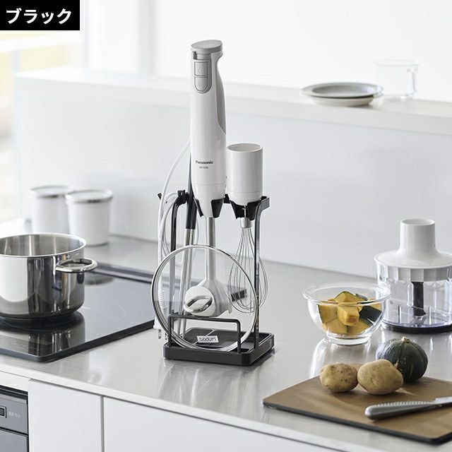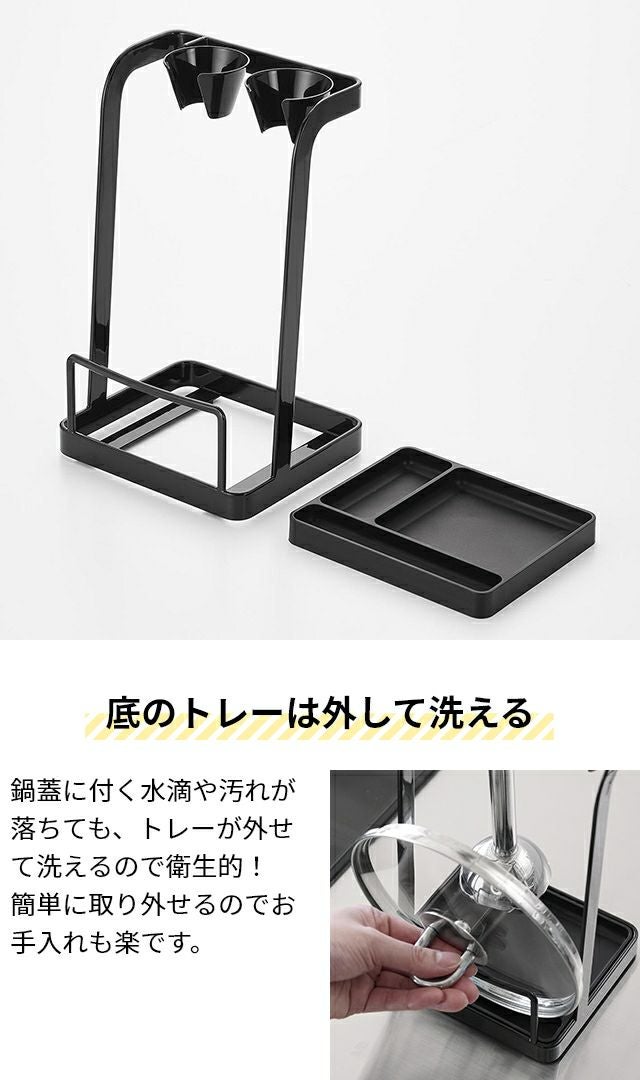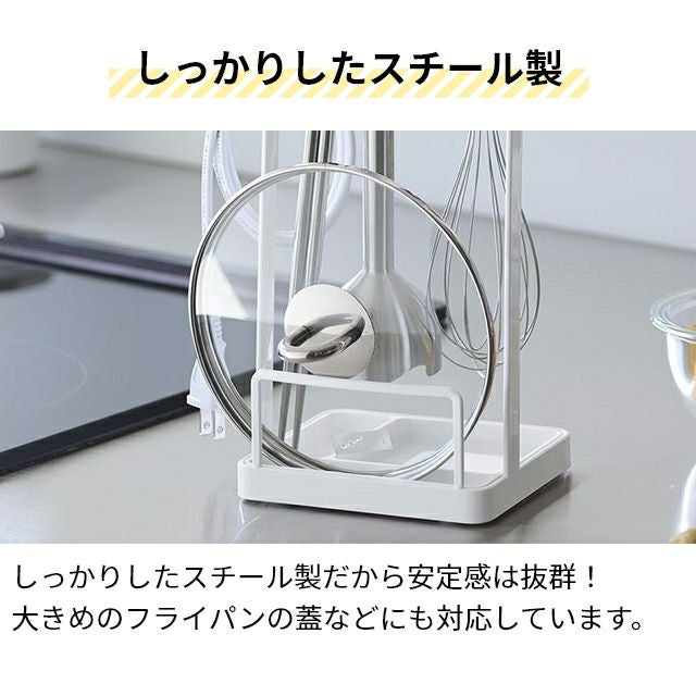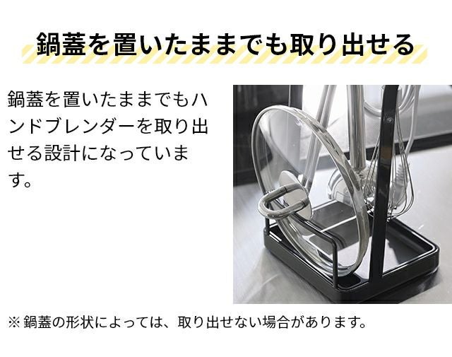 鍋蓋やハンドブレンダー、菜箸をまとめて立て掛けられる便利なスタンド。しっかりしたスチール製だから安定感も抜群!底のトレーは簡単に取り外して洗えます。 山崎実業 鍋蓋置き トレー付き鍋蓋&ハンドブレンダースタンド タワー 1614 1615 菜箸置き 一時置き 鍋蓋ホルダー キッチンツールスタンド キッチン 便利グッズ おしゃれ 料理中 台所 tower キッチン収納 浮かせる収納 yamazaki タワーシリーズ