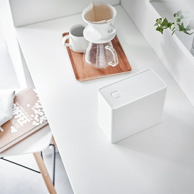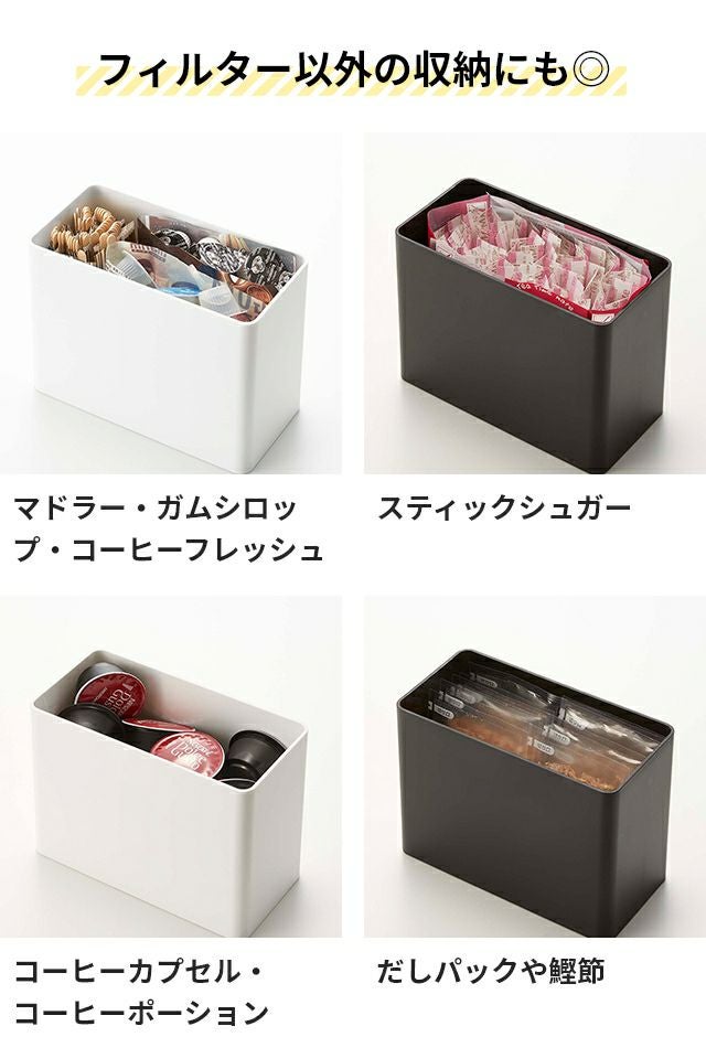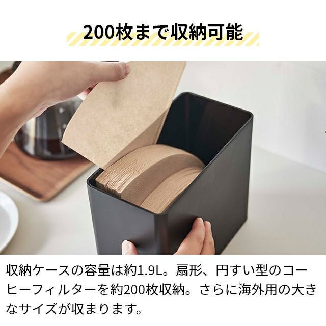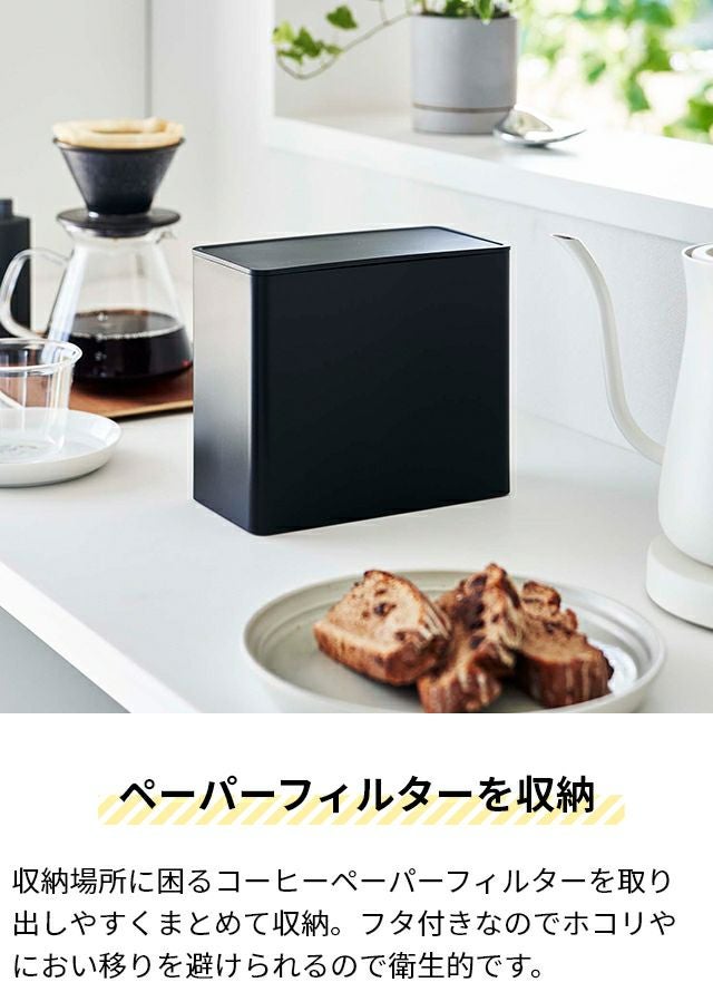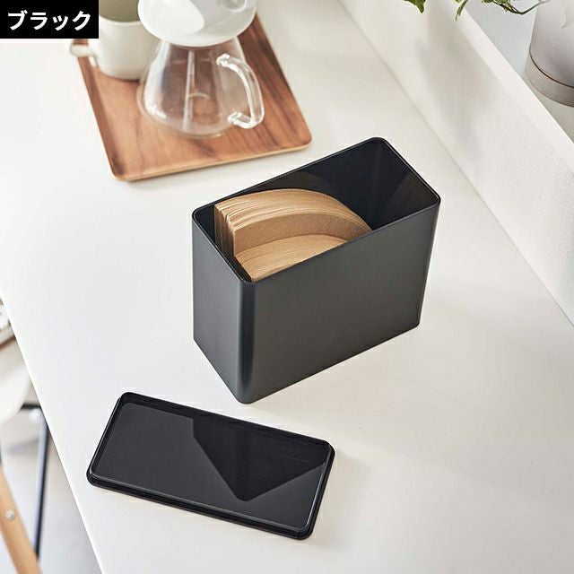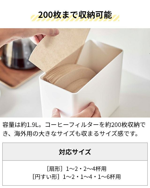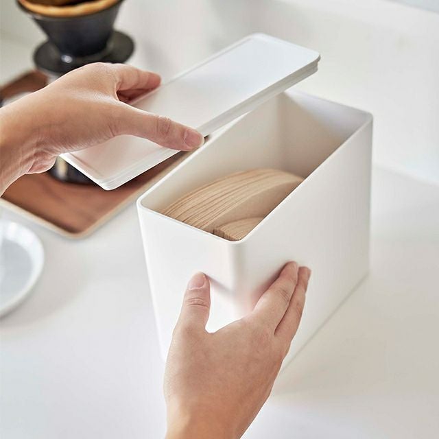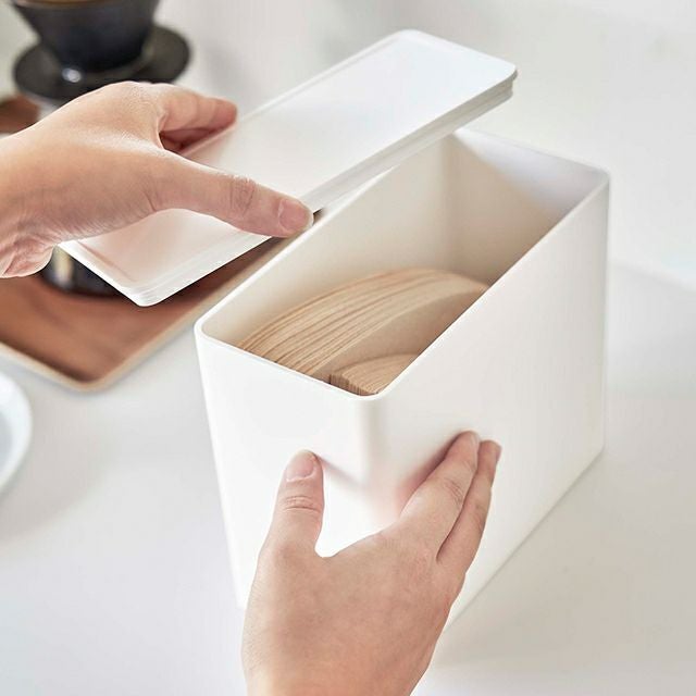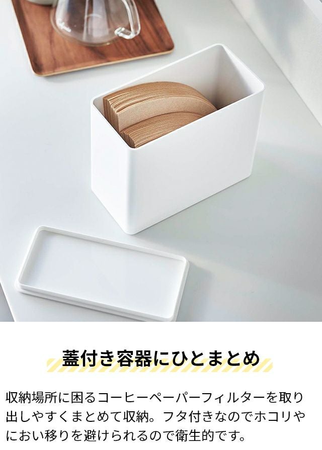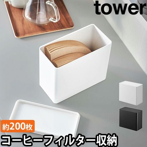 扇形・円すい形のペーパーフィルターを約200枚収納できるコーヒーフィルター収納ケース。蓋付きでホコリやニオイ移りから守ります!スリムだからキッチンにも置きやすい◎ 山崎実業 コーヒーフィルター ケース コーヒーフィルター収納ケース タワー 6905 6906 収納ケース ストッカー 保存容器 キッチン用品 蓋付き 四角 角型 北欧 ドリッパー おしゃれ シンプル モノトーン tower キッチン収納 yamazaki タワーシリーズ