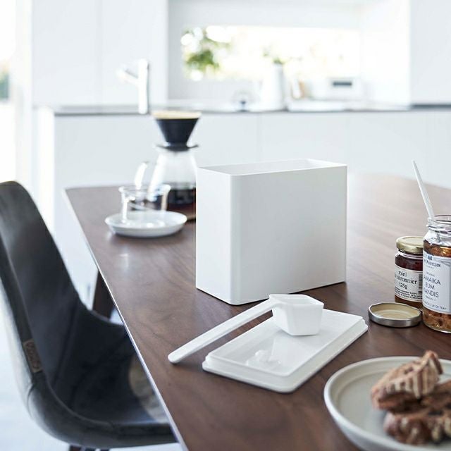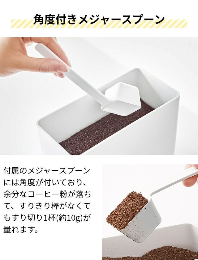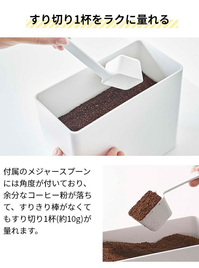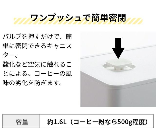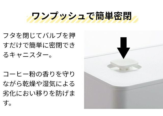 バルブを押すだけで、簡単に密閉できるキャニスター。酸化など空気に触れることによる、コーヒーの風味の劣化を防ぎます。 山崎実業 バルブ付き密閉コーヒーキャニスター タワー 6907 6908 保存容器 密閉容器 密閉 四角 バルブ 角型 スプーン付き おしゃれ プラスチック キッチン用品 シンプル 蓋付き 食品 鮮度 ワンタッチ 洗いやすい tower yamazaki タワーシリーズ