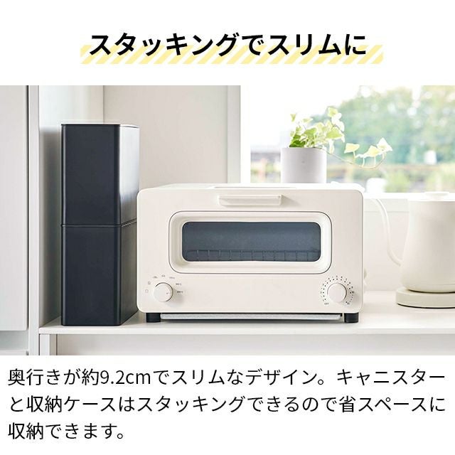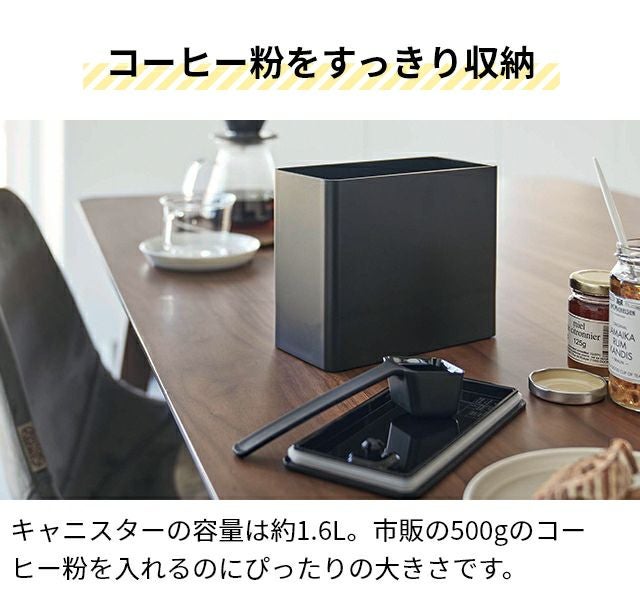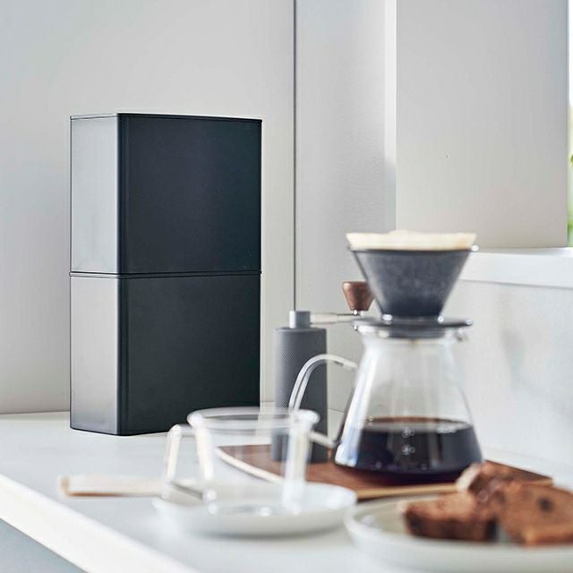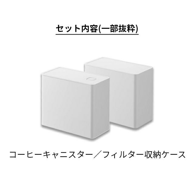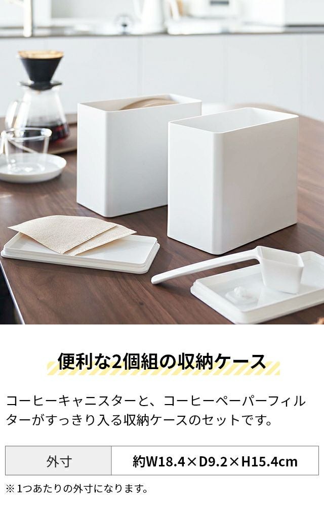 コーヒー粉とフィルターを収納できる2個組の収納ケース。約500gのコーヒー粉が入れられ、フタのバルブで密閉できるキャニスターと、約200枚のフィルターが入ります。 山崎実業 コーヒーキャニスター バルブ付き密閉コーヒーキャニスター&フィルター収納ケース タワー 6903 6904 コーヒーキャニスター 収納ケース コーヒーフィルターケース 保存容器 粉 おすすめ シンプル モノトーン tower yamazaki タワーシリーズ