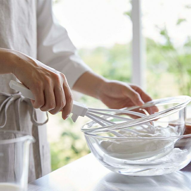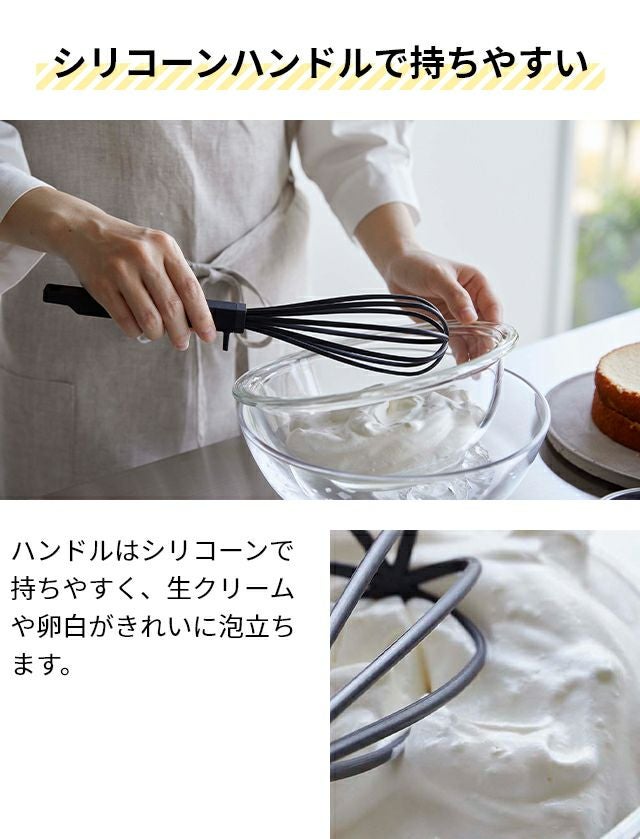 ガラスボウルや鍋などの表面をキズつけにくい、ナイロン製の泡だて器。 生クリームや卵白の泡だてにはもちろん、耐熱性にも優れているので普段の調理でも活躍します。 山崎実業 シリコーンハンドル 泡立て器 タワー 6362 6363 ホイッパー 手動 生クリーム 小型 お菓子作り おしゃれ シンプル 洗いやすい コンパクト キッチンツール キッチン用品 調理器具 ナイロン 便利グッズ tower yamazaki タワーシリーズ