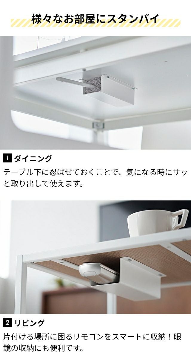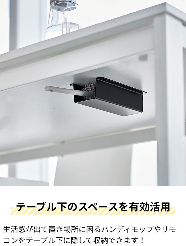 テーブル下に隠して収納!置きどころに困るハンディモップやリモコンが入る収納ケース。目立ちにくいテーブル下に置き場をつくることで使いたいときにサッと使えます。 山崎実業 ハンディモップ ケース テーブル下ハンディモップ&リモコンホルダー タワー 4542 4543 収納ケース リモコンケース 掃除用具入れ ワイパースタンド 小物 スリム tower 隙間収納 すきま収納 リビング収納 yamazaki タワーシリーズ