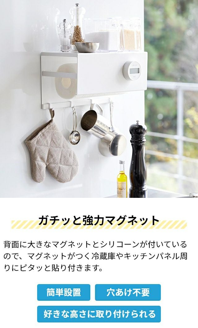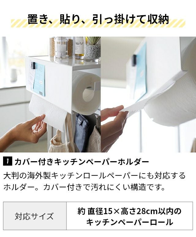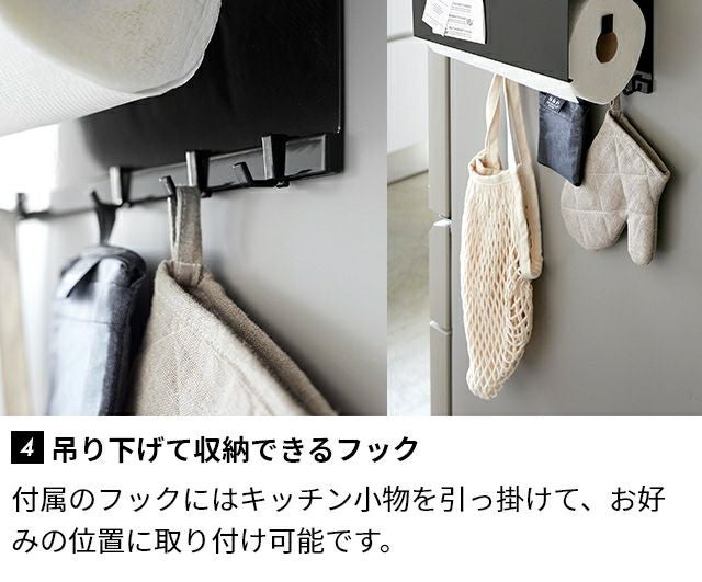 キッチンペーパーをサッと取り出せる!他にもキッチン小物をまとめて収納できる多機能なキッチンペーパーホルダーです。マグネットで冷蔵庫に貼って取り付けも簡単。 山崎実業 キッチンペーパーホルダー マグネットトレー付きキッチンペーパーホルダー タワー 4098 4099 キッチンツールフック 調味料ラック キッチンフック 冷蔵庫 おしゃれ マグネット キッチン 砂糖塩 tower キッチン収納 yamazaki タワーシリーズ