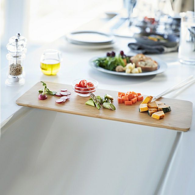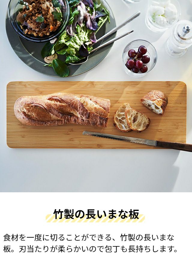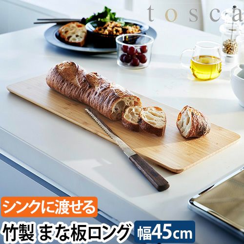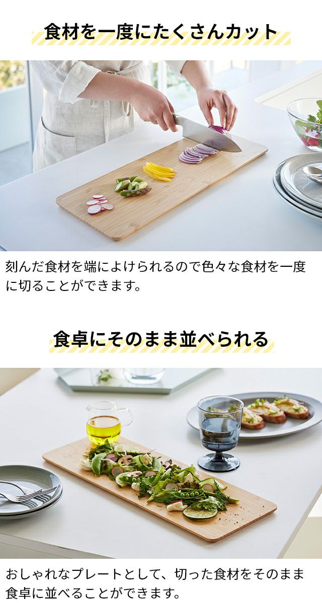 オシャレな皿代わりにもなる、バンブー製の長いまな板。食材を一度に切れて、刃当たりがやわらかく包丁も長持ち。薄型で扱いやすく、シンクに渡して使える優れものです。 山崎実業 まな板 トスカ ロング 3697 カッティングボード おしゃれ 肉 大きい オシャレ まないた 盛り付け インスタ映え インテリア 一枚板 薄型 大きめ シンクに渡して使える かわいい 皿代わり 竹 チーズ 天然 バンブー tosca yamazaki