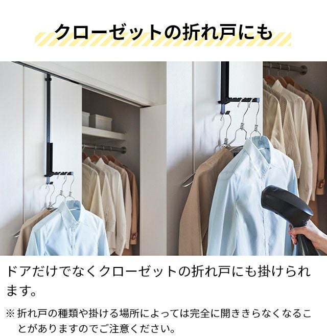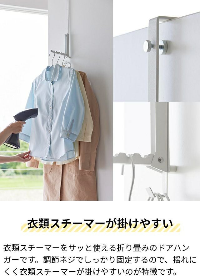タワーのおしゃれなドアハンガーは、揺れにくく衣類スチーマーが掛けやすい!最大6つまで掛けられて、ドアやクローゼットに掛けて壁を傷つけないのでお部屋に優しい。 山崎実業 ドアハンガー 使わない時は折り畳める衣類スチーマー用ドアハンガー タワー 4328 4329 ドアフック 洋服掛け コートハンガー アイロン台 洋服掛けラック スリム おしゃれ 壁 傷つけない tower 壁面収納 見せる収納 yamazaki タワーシリーズ