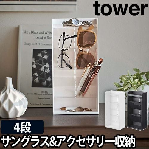 山崎実業/アクセサリーケース/ジュエリーボックス/眼鏡ケース/鍵/ピアス/ネックレス/小物/インテリア/ジュエリー/リング/ボックス/眼鏡収納/玄関/リビング/寝室/収納/yamazaki/タワーシリーズ/白/ホワイト/黒 山崎実業 アクセサリーケース ジュエリーボックス 眼鏡ケース 鍵 ピアス ネックレス 小物 インテリア ジュエリー リング ボックス 眼鏡収納 yamazaki タワーシリーズ [tower タワー サングラス&アクセサリー立体収納ケース 4段 5605 5606 4903208056052 4903208056069]