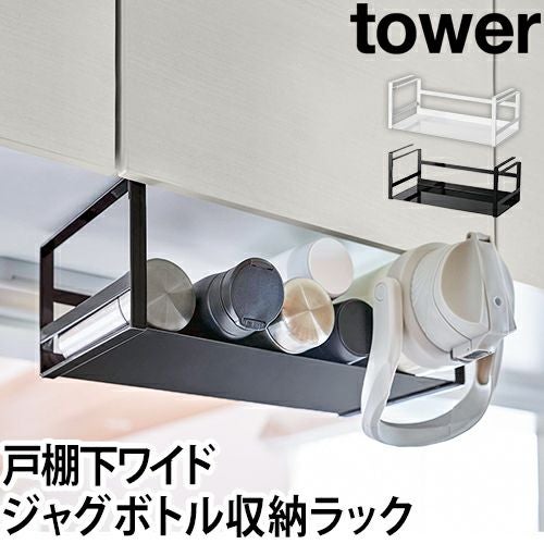 山崎実業/キッチンラック/ラック/ボトルスタンド/吊り下げラック/ラップホルダー/吊り下げ棚/フック/吊り戸/戸棚/戸棚下収納/キッチン収納/ボトル収納/キッチン/マグボトル/台所/水筒/洗面所/タオル/収納/yamazaki 山崎実業 キッチンラック ラック ボトルスタンド 吊り下げラック ラップホルダー 吊り下げ棚 フック 吊り戸 戸棚 戸棚下収納 キッチン収納 ボトル収納 yamazaki タワーシリーズ [tower タワー 戸棚下ワイドジャグボトル収納ラック 5276 5277 4903208052764 4903208052771]
